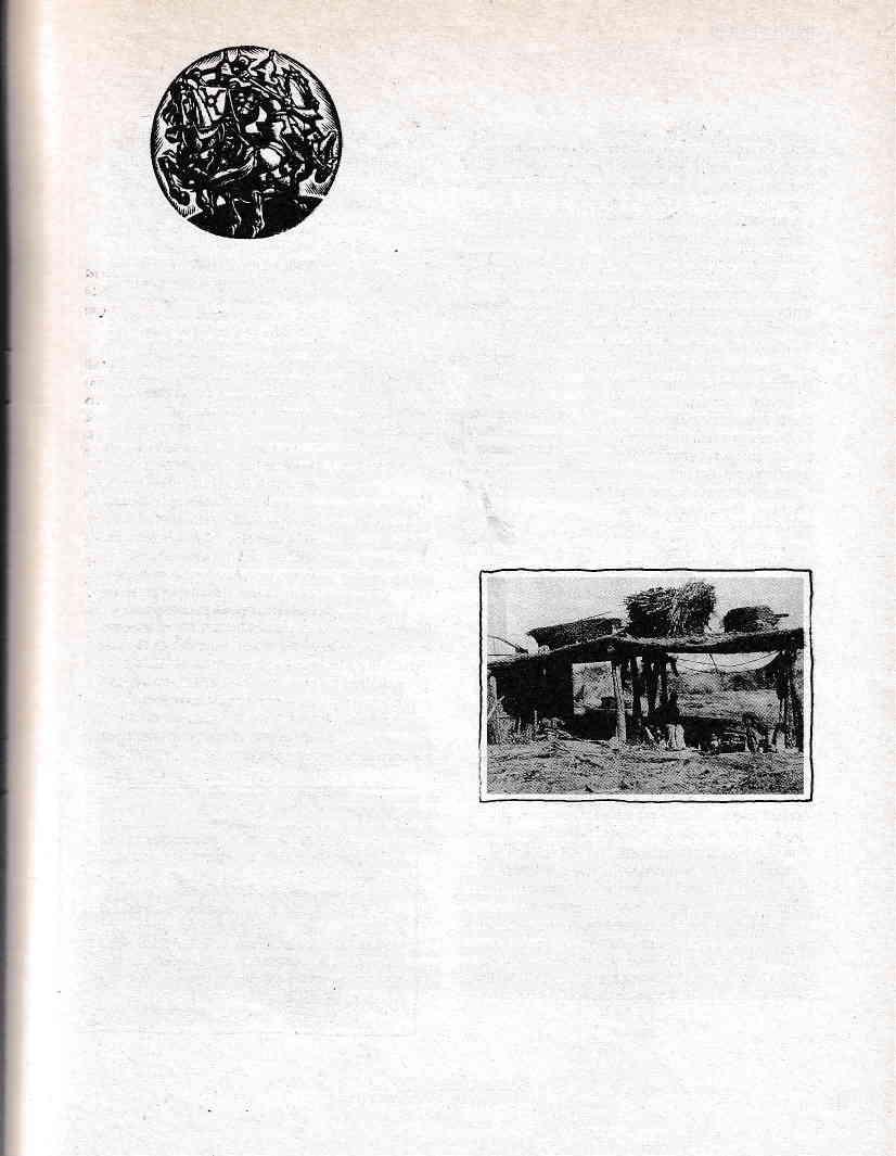 Uno que otro haz de una iuna ilena se proyeclan a través de grandes boquetes en el techo del almacén sobre el piso carcomido, semejando Iunares luminosos, y construyendo url escenario ¡atural para ]a faena roct¡rma...