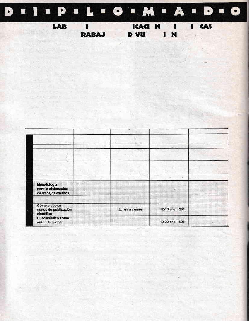 Lunes a v¡ernes 15-19 d¡c de trabajos escritos 9:00-13:00 Cómo elaboÍaa textos d6 divulgac¡ón 12-16 ene. 19SB 9:00-13:00 textos de publicación