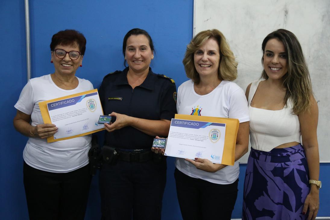 A ação conta, ainda, com o apoio do Grupo Mulheres do Brasil que realizou no último dia 9, a capacitação para policiais civis, OAB, guardas municipais e servidores de várias Secretarias Municipais Com o tema “Sensibilização, o feminino e as interfaces da violência: entender, acolher e orientar”, a palestra foi proferida pela advogada, assistente social e professora Marilia Vilardi Mazeto, que enfatizou a nova atuação de acolher as mulheres vítimas de violência. A capacitação também teve a participação da Delegada Titular de P lí i d V G d P li t D F i i Ib hi