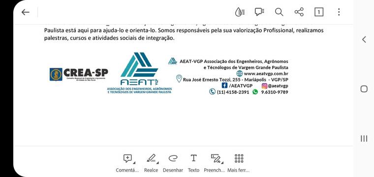 Caro Profissional a AEAT VGP –Associação dos Engenheiros, Agrônomos e Tecnólogos de Vargem Grande Paulista está aqui para ajuda-lo e orienta-lo Somos responsáveis pela sua valorização Profissional, realizamos palestras, cursos e atividades sociais de integração