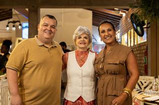 Eduardo, Karina e Lúcio celebram a abertura do Café Oblívio em Tremembé.
