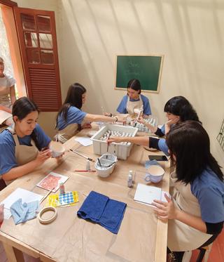 des criativas e profissionais em contato com especialistas. Atualmente, 14 oficineiros voluntários se dividem em atividades de bordado, cerâmica, marcenaria e panificação, além de aulas de consciência ambiental — coordenadas por um profissional parceiro do Instituto Federal de Campos do Jordão — e oficinas, como “Mães e Filhos”, proporcionando experiências únicas de aprendizado.