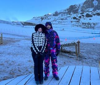 Dimaily Banzi e William Relvas aproveitam a neve e o frio em Farellones, Chile.