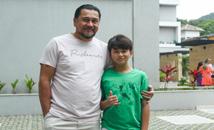 Reinaldo Carneiro Bastos , presidente da Federação Paulista de futebol , com seu filho André acompanhando os jo gos da copa do mundo no Quatar