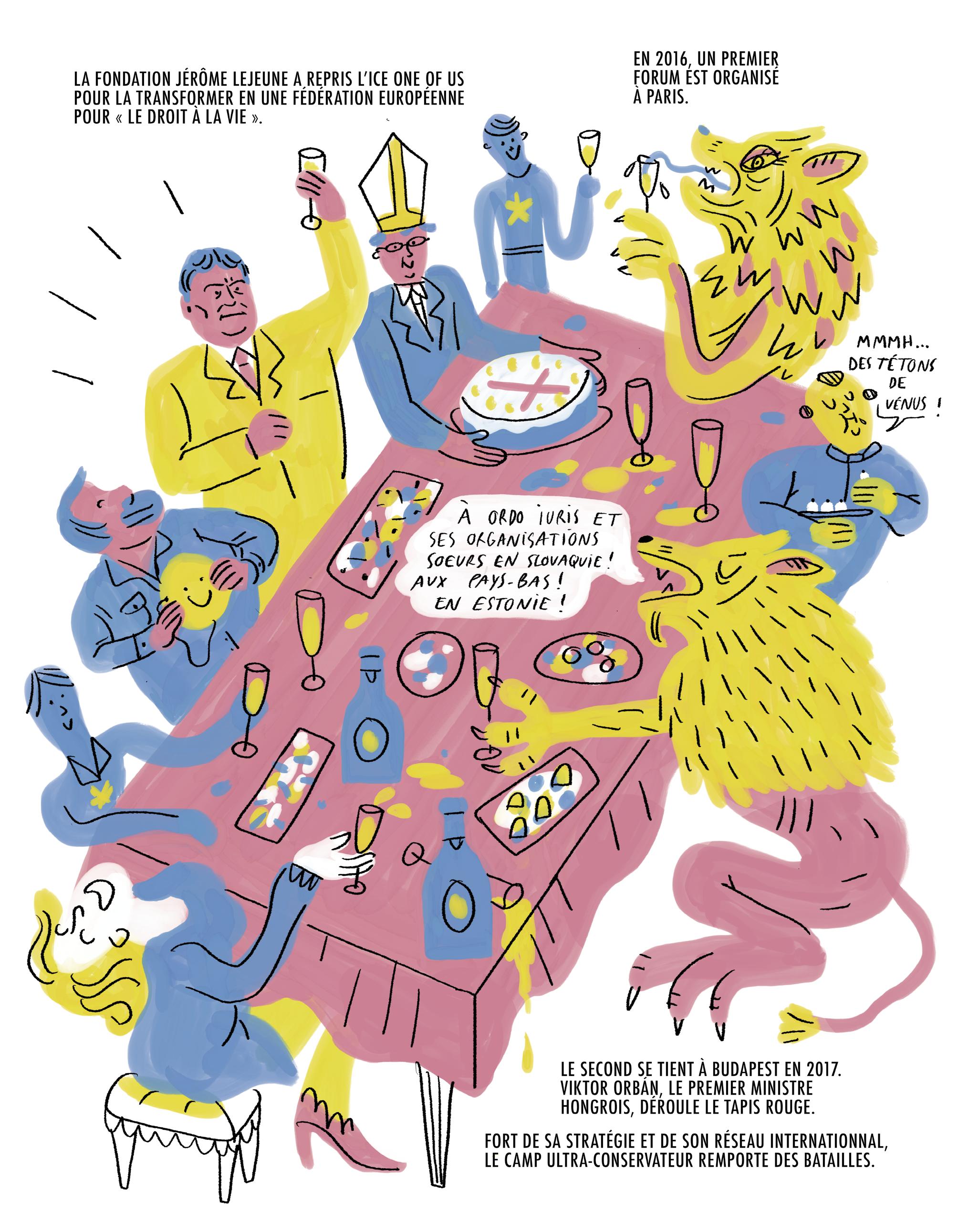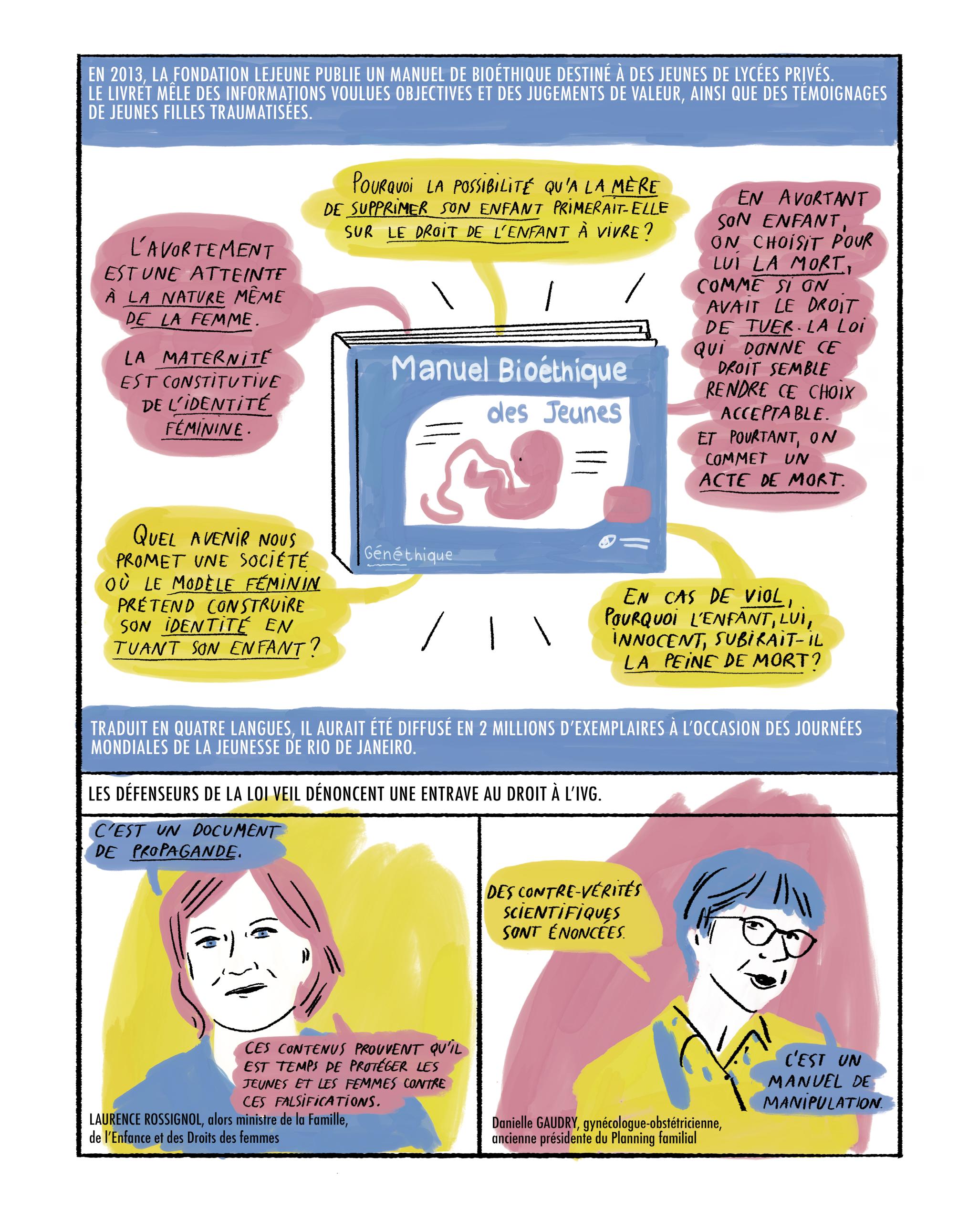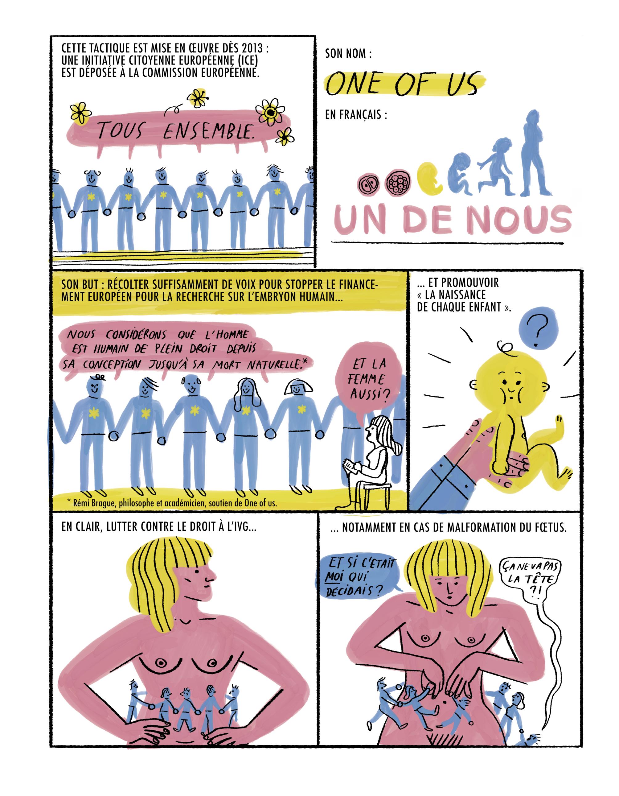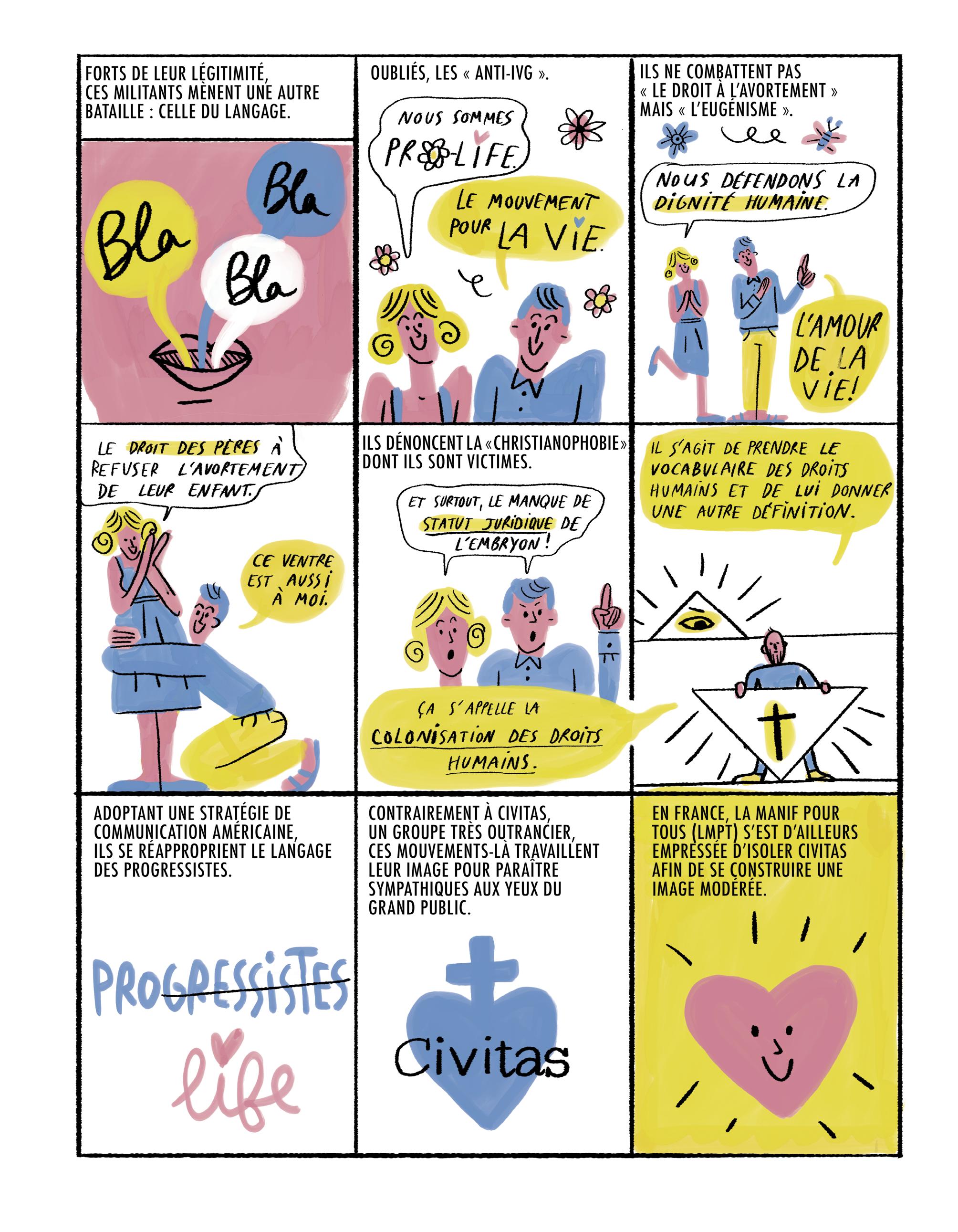 déploient tout un arsenal de techniques de lobbying, du recours juridique à l’activisme en ligne, pour faire reculer les législations. La France n’est pas épargnée par l’influence de ces groupes de pression. En juin 2021, Emmanuel Macron déclarait dans le magazine Elle n’être « pas favorable » à la proposition de loi autorisant un allongement de douze à quatorze semaines au motif qu’un avortement dans ces délais serait un « traumatisme » pour les femmes. Un discours typique de la rhétorique anti-IVG. « La liberté de décider, on s’est battus pour la gagner, on se battra pour la garder ! » scandaient les féministes le 28 septembre 2021 à l’occasion de la Journée mondiale du droit à l’IVG. Dans le camp opposé, une internationale ultra-conservatrice fourbit ses armes pour faire du corps des femmes son champ de bataille.