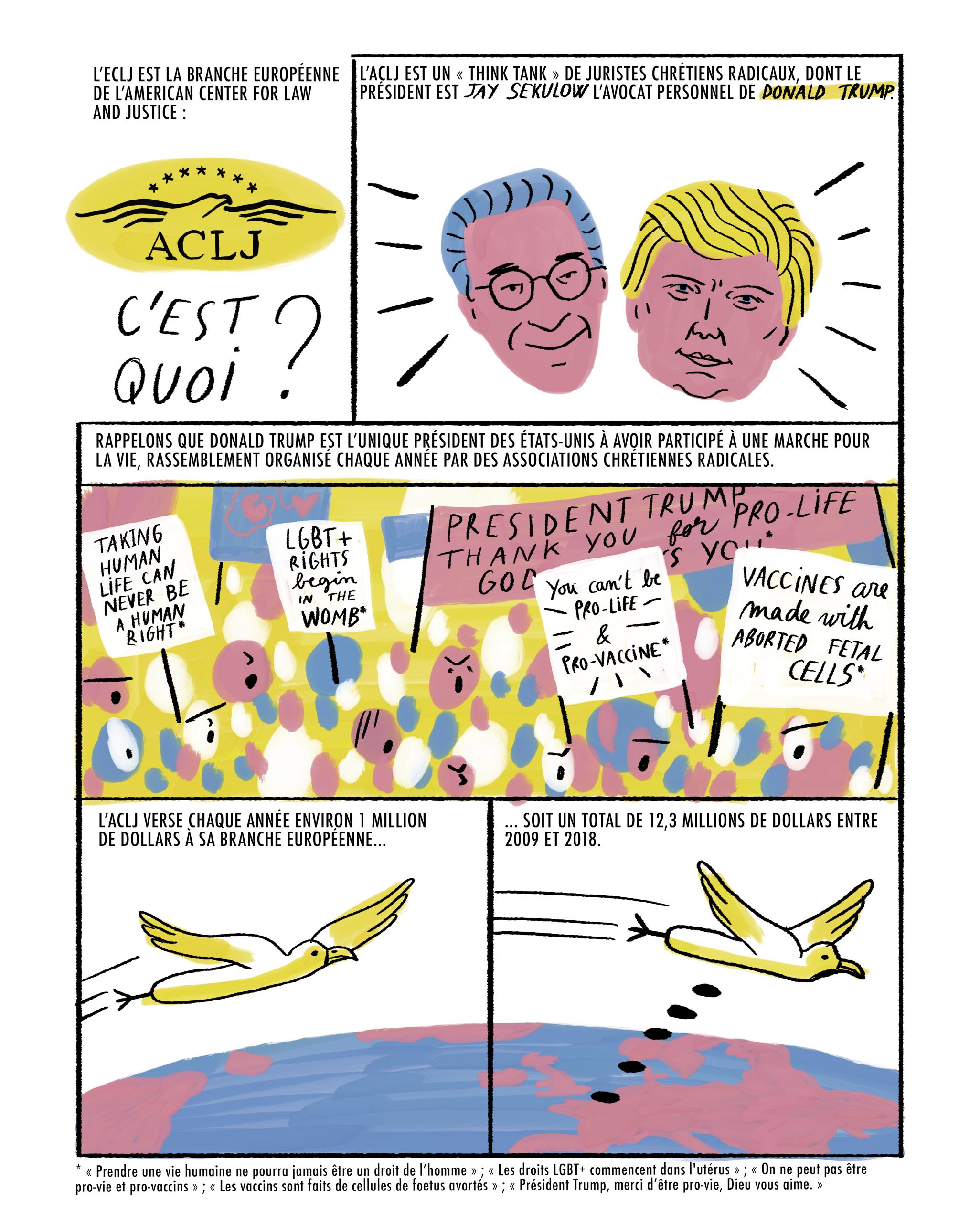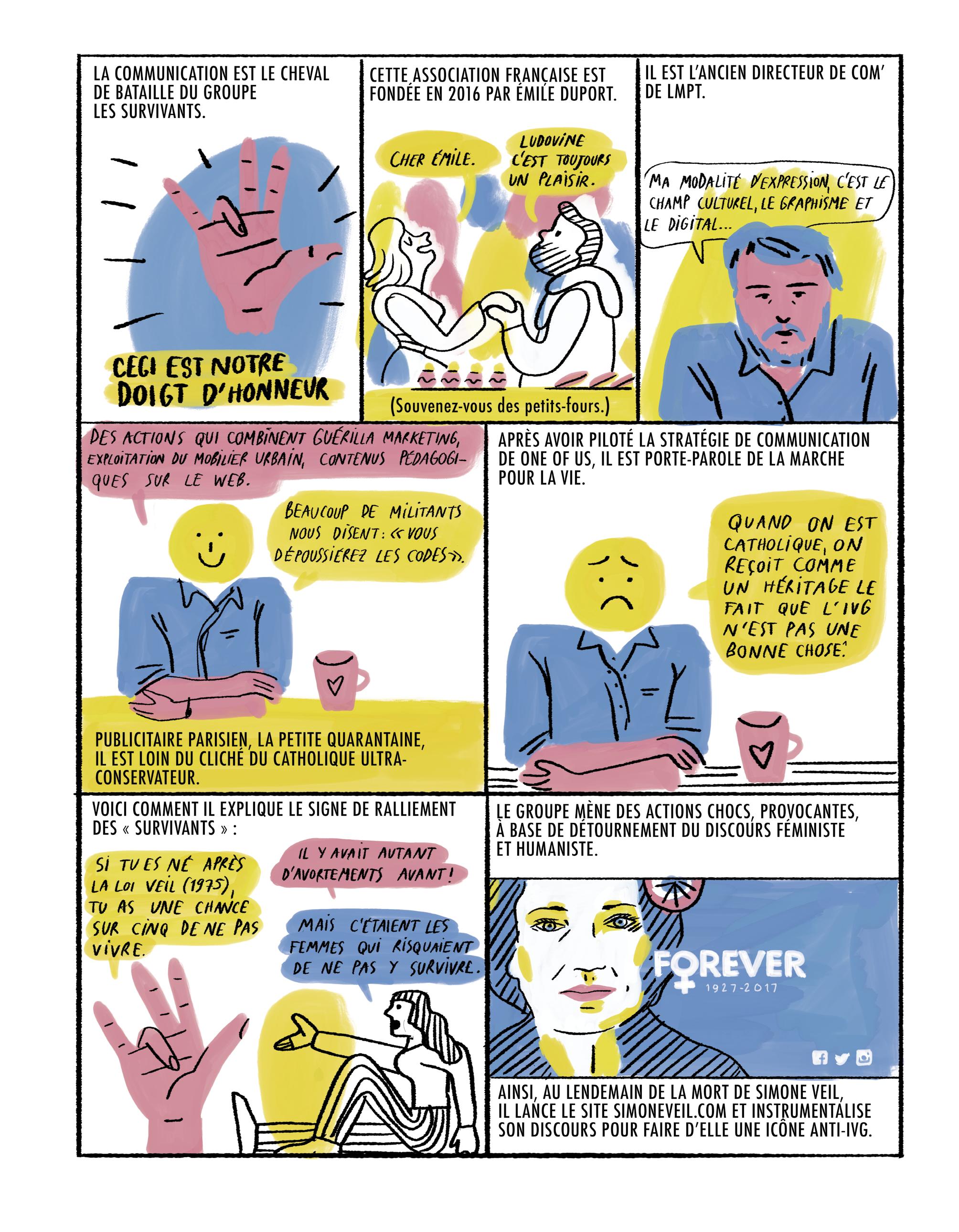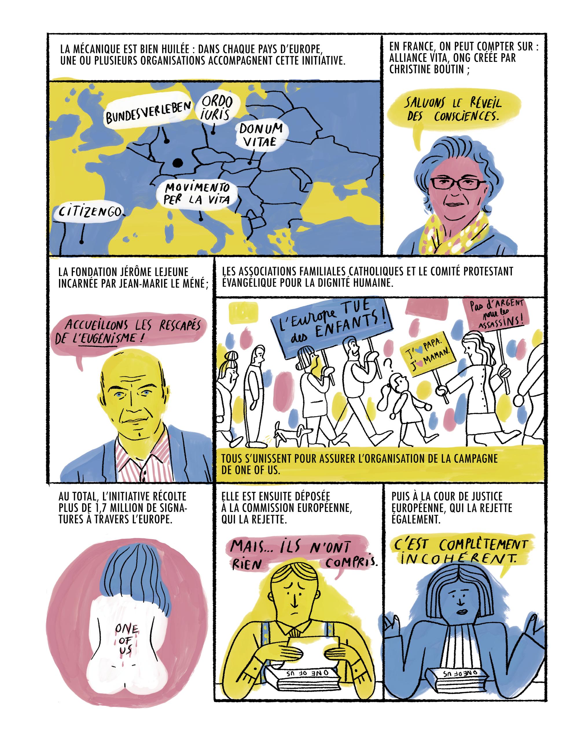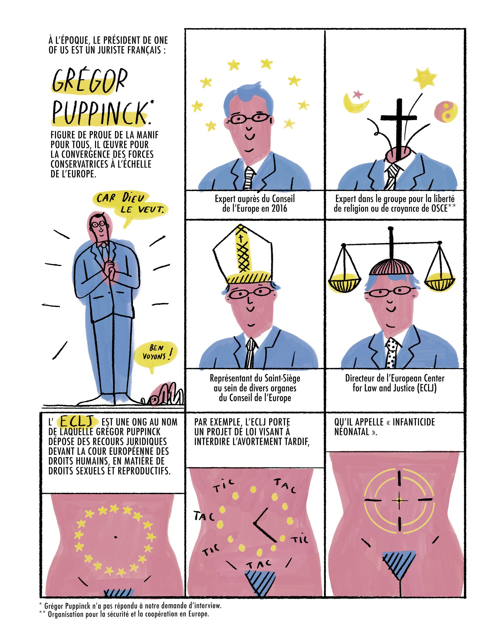 déploient tout un arsenal de techniques de lobbying, du recours juridique à l’activisme en ligne, pour faire reculer les législations. La France n’est pas épargnée par l’influence de ces groupes de pression. En juin 2021, Emmanuel Macron déclarait dans le magazine Elle n’être « pas favorable » à la proposition de loi autorisant un allongement de douze à quatorze semaines au motif qu’un avortement dans ces délais serait un « traumatisme » pour les femmes. Un discours typique de la rhétorique anti-IVG. « La liberté de décider, on s’est battus pour la gagner, on se battra pour la garder ! » scandaient les féministes le 28 septembre 2021 à l’occasion de la Journée mondiale du droit à l’IVG. Dans le camp opposé, une internationale ultra-conservatrice fourbit ses armes pour faire du corps des femmes son champ de bataille.