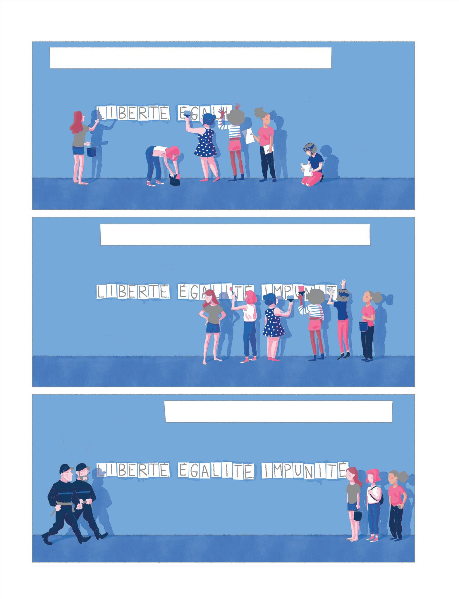 Elle est la première à avoir écrit en lettres noires sur des feuilles A4 des phrases-chocs dénonçant les violences faites aux femmes. Simple et efficace, le mode d’action s’est rapidement propagé. Pourtant, parmi les féministes, nombreuses sont celles qui condamnent les opinions de Marguerite Stern, que ce soit sur le port du voile (auquel elle se dit opposée) ou sur la place des personnes transgenres* au sein du mouvement féministe. Pour ses prises de position, la militante a même été exclue symboliquement du groupe Collages féminicides Paris, et les colleuses nantaises citées dans ce reportage refusent de lui être associées.