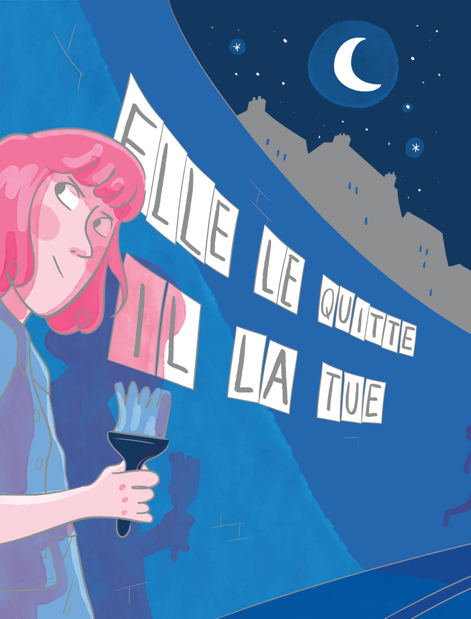DÈS L’ÉTÉ 2019, POUR AFFICHER L’INDIFFÉRENCE DES AUTORITÉS FACE AUX VIOLENCES CONJUGALES, ELLE S’EST MISE À PEINDRE DES SLOGANS ET LES A COLLÉS SUR LES MURS DE MARSEILLE.