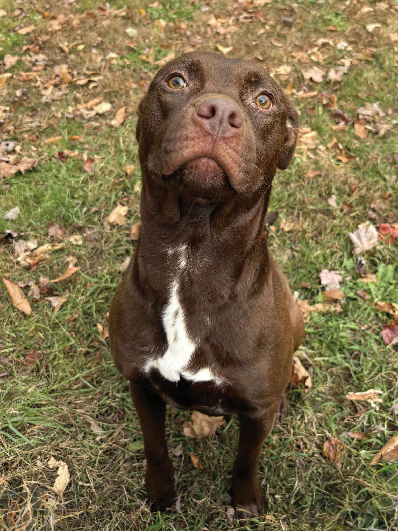She is all about enjoying the simple things with her people. She’s the kind of pup who would be happy lounging with you on a covered deck during a rainy afternoon, tagging along for a stroll through the woods, or settling in for a cozy night by the campfire.