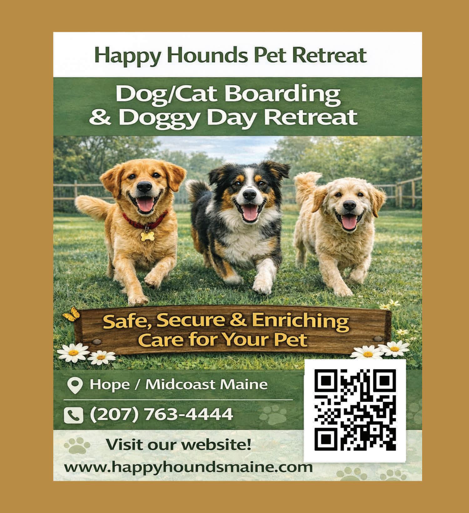 Sponsored by: White Willow Retreat for Dogs 1761 Augusta Road, Belgrade, (207)495-3596, whitewillowretreat.com