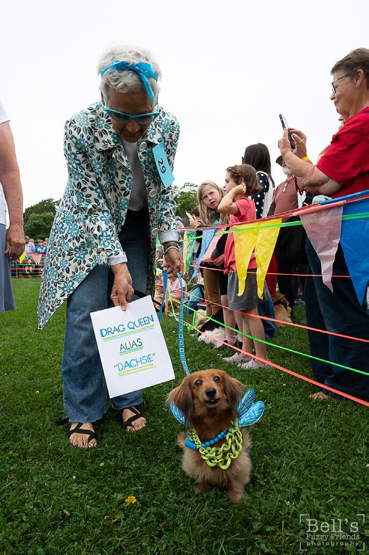 the French Tourist and Poppy who was a Drag Queen aka “Dachsie.” Thank you to our costume judges, Keith Carson from News Center, Dorothy Havey, Belfast Chamber Director, artist Marie Spaulding and Connie Gardiner. Keith, his son Luca and their new dachshund, Magnolia (Maggie) also joined Petey the P.A.W.S. mascot to lead the parade of dogs around the park.