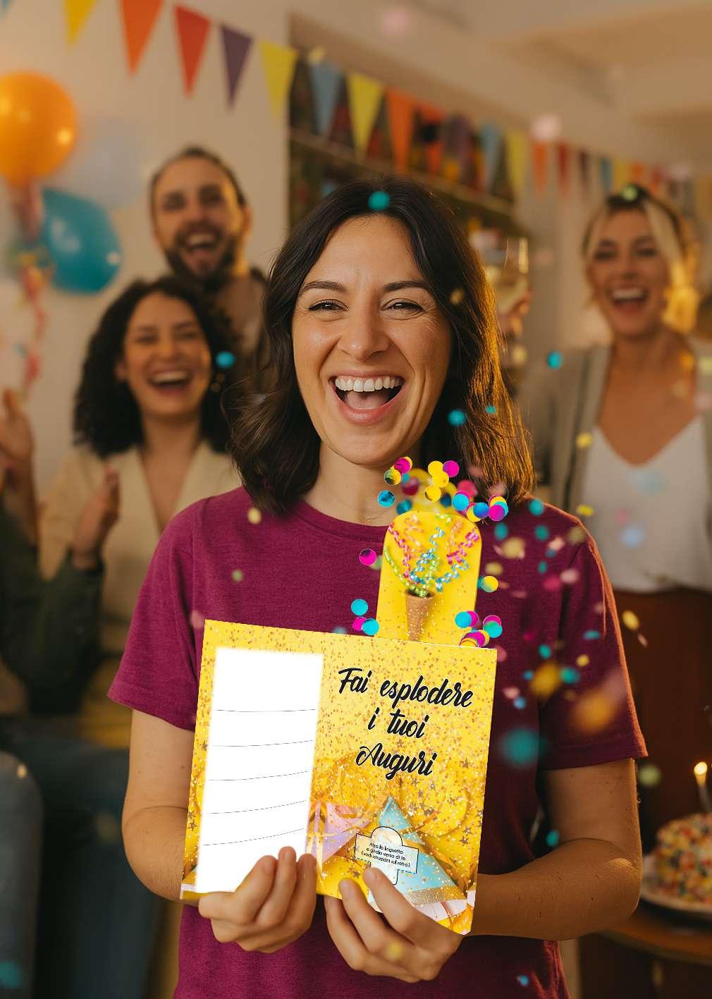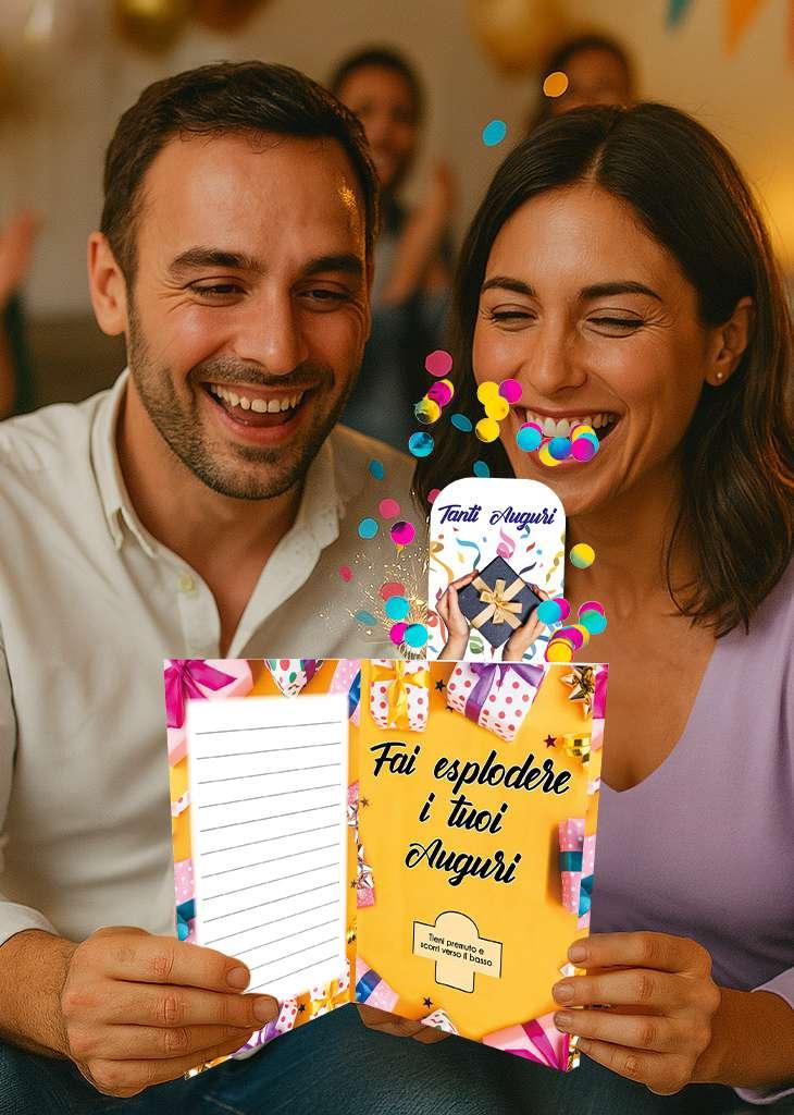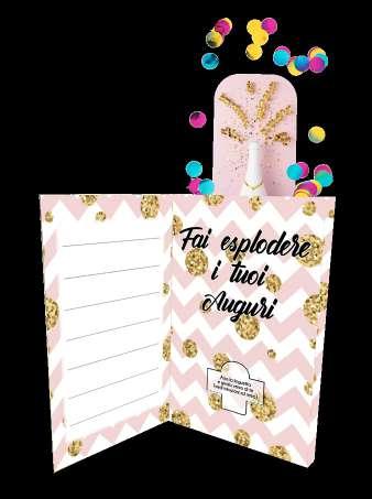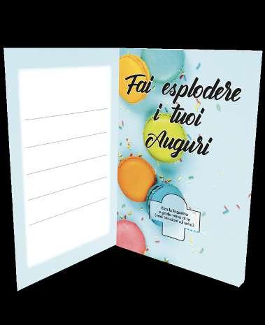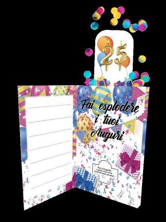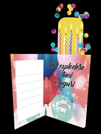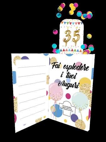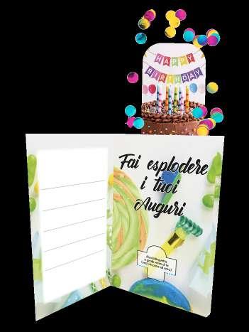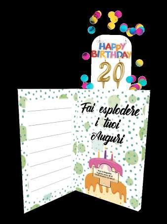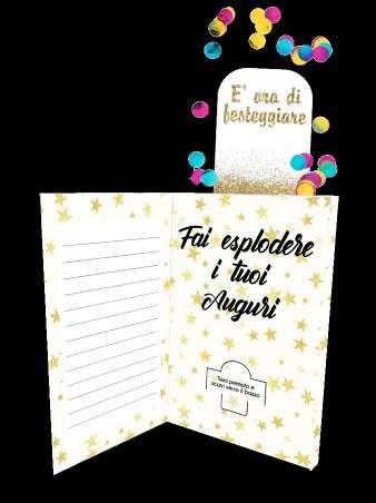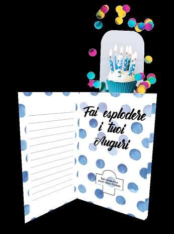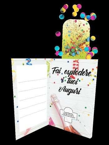 Molte grafiche tra cui scegliere per tutte le occasioni Un simpatico biglietto che, oltre a contenere il tuo messaggio di auguri, spara in aria mille coriandoli colorati per un effetto sorprendente!