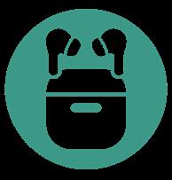 Celle da 40mAh negli auricolari per una lunga durata della batteria. Custodia con batteria 500mAh 3.7V con sistema di gestione energetica intelligente.