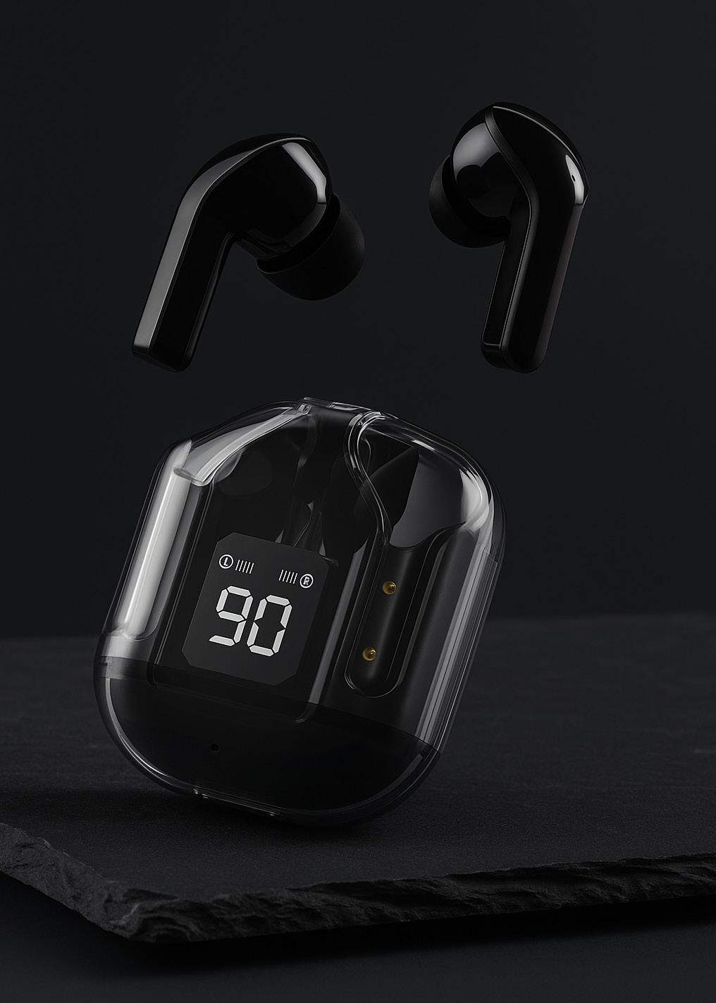 Il display LED digitale rivoluziona il modo di gestire l’energia degli auricolari, mostrando in tempo reale la percentuale esatta di carica sia degli auricolari che della custodia. Questa innovazione ti permette di sapere sempre quando è il momento giusto per ricaricare.