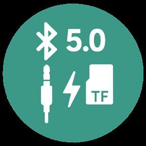 Bluetooth 5.0 per una connessione wireless stabile, AUX per compatibilità universale, slot scheda TF per lettore indipendente. Versatilità unica per passare da chiamate a playlist, da podcast a film...