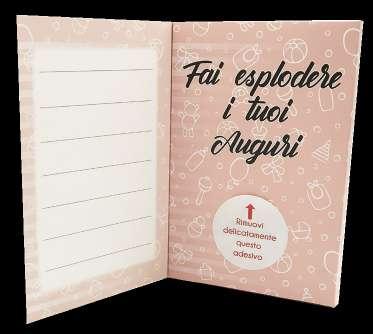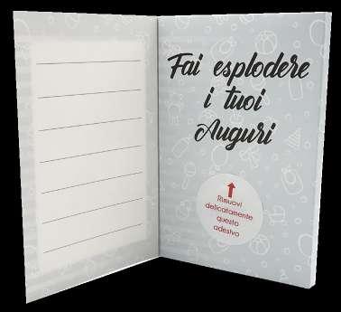 La parte Surprise è un secondo biglietto nascosto in linea con la grafica, che ti permette di scrivere un messaggio di auguri o inserie denaro, gift card, dediche personalizzate...