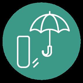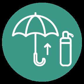 Sistema di contenimento per l’ombrello bagnato con protezione totale di borsa e oggetti personali.