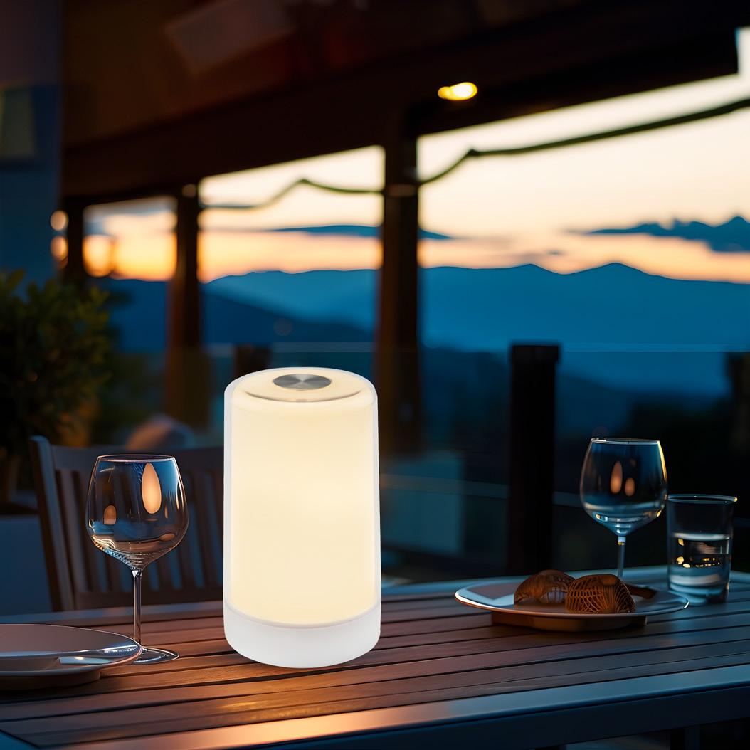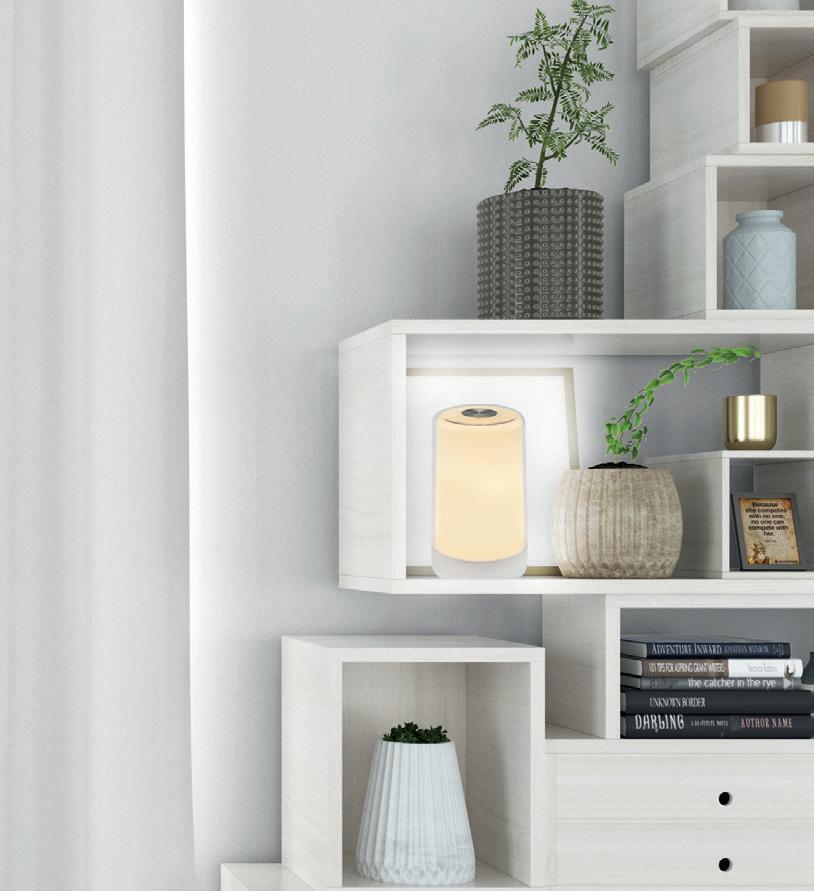 Il design cilindrico minimalista si integra perfettamente in qualsiasi ambiente, dal moderno al classico, mentre la tecnologia touch rende ogni cambio di colore e intensità un gesto naturale e intuitivo.