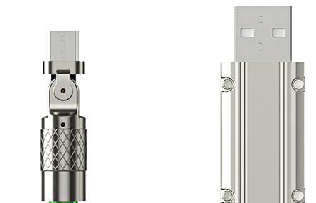 Snodo rotante a 180° che rivoluziona la durabilità e elimina le rotture più comuni. Il connettore si adatta a qualsiasi angolazione senza stress meccanico, garantendo una durata superiore con un uso intensivo.