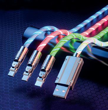 Non solo cavi di ricarica e scambio dati, ma elementi di design tecnologico che illuminano la postazione con effetti di luce colorati.