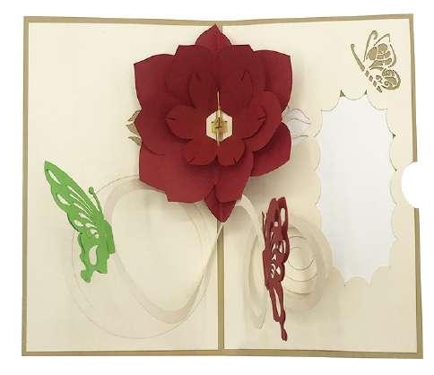 Biglietto Origami Surprise Rosa rossa con farfalle - ORSU3613