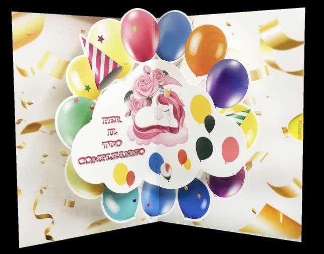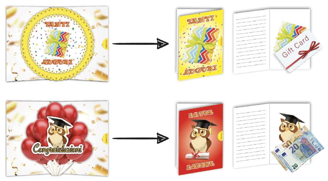 La parte Surprise è un secondo biglietto nascosto in linea con la grafica, che ti permette di scrivere un messaggio di auguri o inserie denaro, gift card, dediche personalizzate...