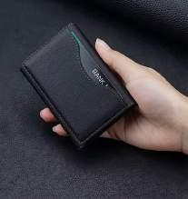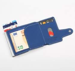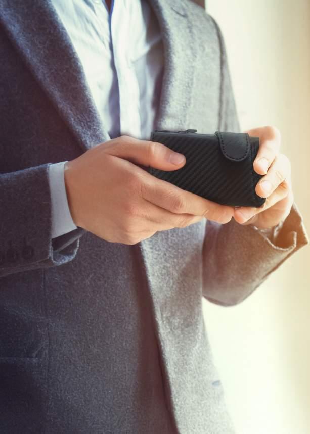 Tecnologia con blocco RFID integrato, invisibilmente crea uno scudo protettivo contro la lettura non autorizzata delle carte e dei documenti elettronici. Protezione costante senza attivazione o manutenzione contro il furto dei dati digitali. Implementata senza aggiungere spessore o peso, mantenendo un profilo sottile e una eleganza caratteristica.