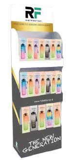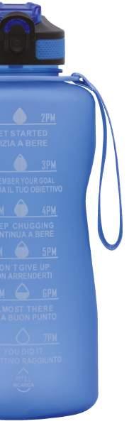 Frasi motivazionali e fasce orarie stampate sul corpo del prodotto che promuovono l’idratazione necessaria durante tutta la giornata.