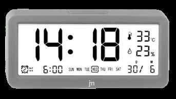 Sveglia al quarzo digitale con luce elettroluminescente bianca a spegnimento ritardato e snooze (ripetizione dopo 5 minuti). Calendario, triplo allarme diversificabile in base al giorno della settimana, rilevazione temperatura e umidità esterne. Confezione da 4 pezzi assortiti. JD9525CF