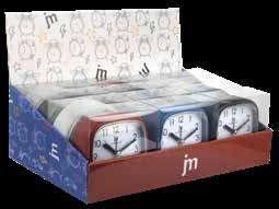 Sveglie al quarzo analogiche con suoneria bip-bip e movimento continuo silenzioso. Confezione da 12 pezzi assortiti con espositore da banco. JA7108CF