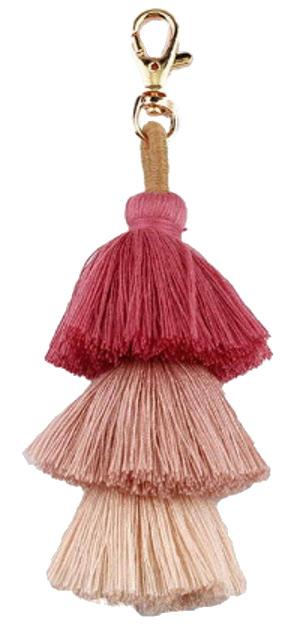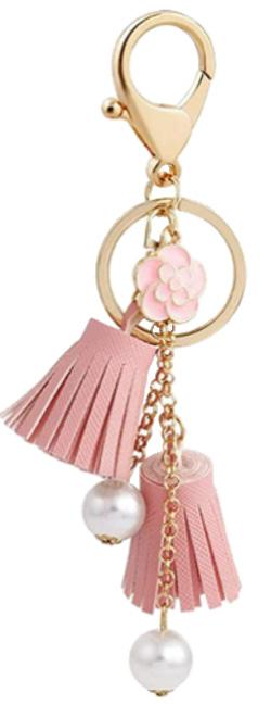 Porta chiavi fiore rosa con anello e moschettone perline bianche e nappe c BO9807