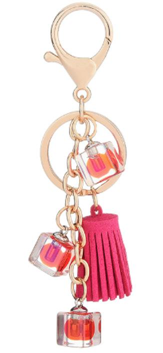 Porta chiavi gioiello con anello e moschettone cubetti di ghiaccio e nappa