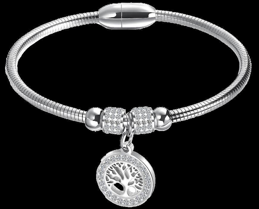 Bracciale albero della vita con strass e chiusura a calamita in acciaio inossidabile