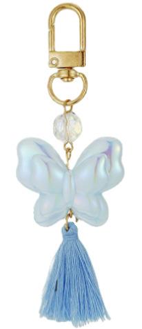 Porta chiavi gioiello farfalla con moschettone con perlina e nappa azzurra