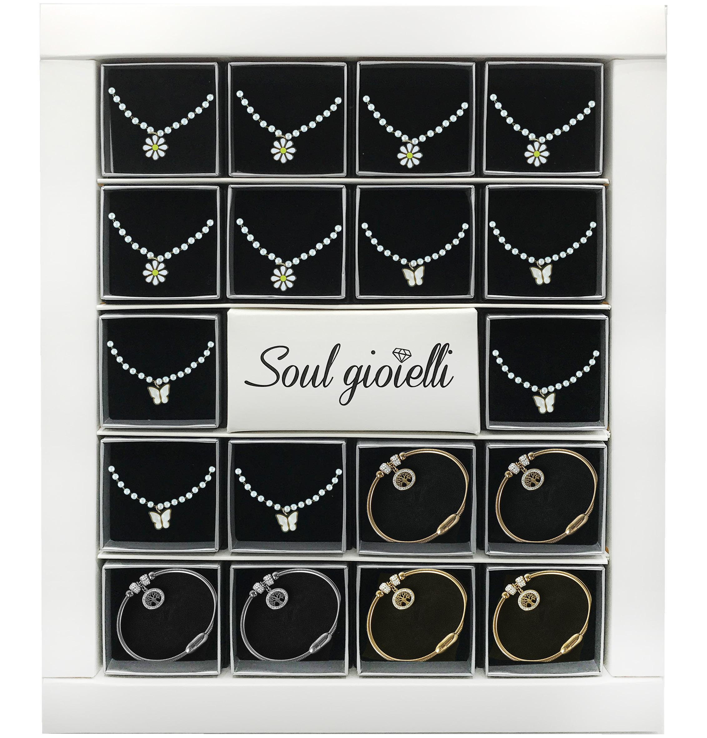 Ogni gioiello Soul viene presentato in una scatola regalo nera e argento elegante e raffinata che trasforma l’acquisto in un’esperienza premium. Il packaging non è solo protezione, ma comunica attenzione ai dettagli e cura per la presentazione.