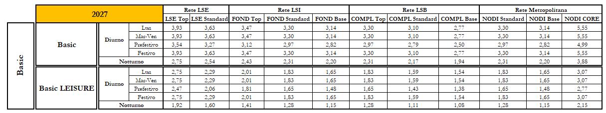 Aggiornamento tariffe di cui ai cap. 5 e 7
