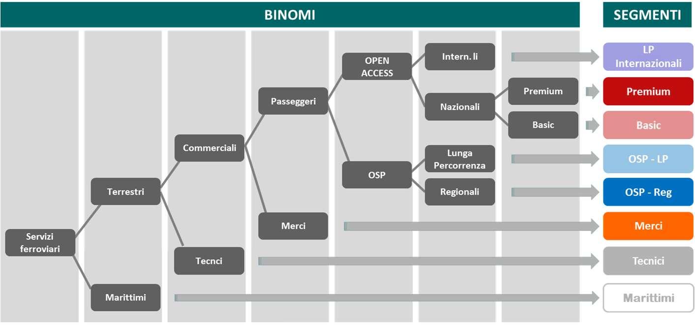 dei principi, criteri, procedure, modalità e termini di calcolo e riscossione relativi al canone di pedaggio ed ai corrispettivi dovuti per la prestazione di servizi forniti da RFI;  dei criteri, procedure, modalità e termini relativi al sistema di assegnazione della capacità di infrastruttura ed all’erogazione dei servizi offerti;  le regole per l’utilizzo dell’infrastruttura ferroviaria e dei servizi ad essa connessi. 1.3