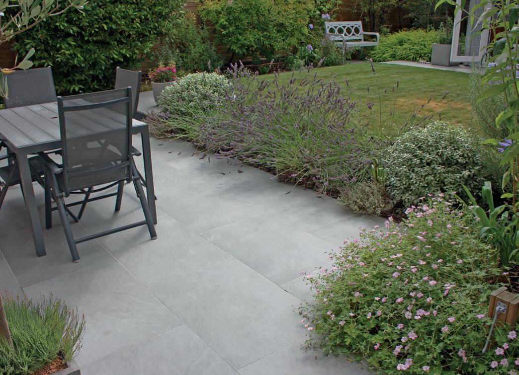 The sawn, straight edges create clean lines for a contemporary look, while the colour choices - classic silverygrey Ice Granite and the deeper-toned Solstice Granite - add versatile colour options.