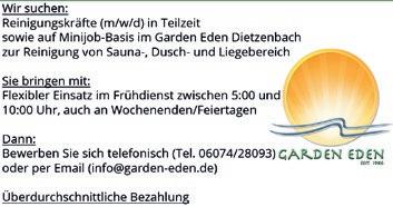 Wir suchen für gepegten Privathaushalt in Fuldatal eine erfahrene, zuverlässige, deutschsprachige und tierliebe (Katze und Hund) Putz- und Bügelhilfe an 2 Tagen wöchentlich für gesamt 8 – 9 Std.. Die Bezahlung erfolgt im Rahmen eines angemeldeten Minijobs mit 15,50 € Std.-Lohn ab Ende Februar 2026. 0172/5 60 35 55.