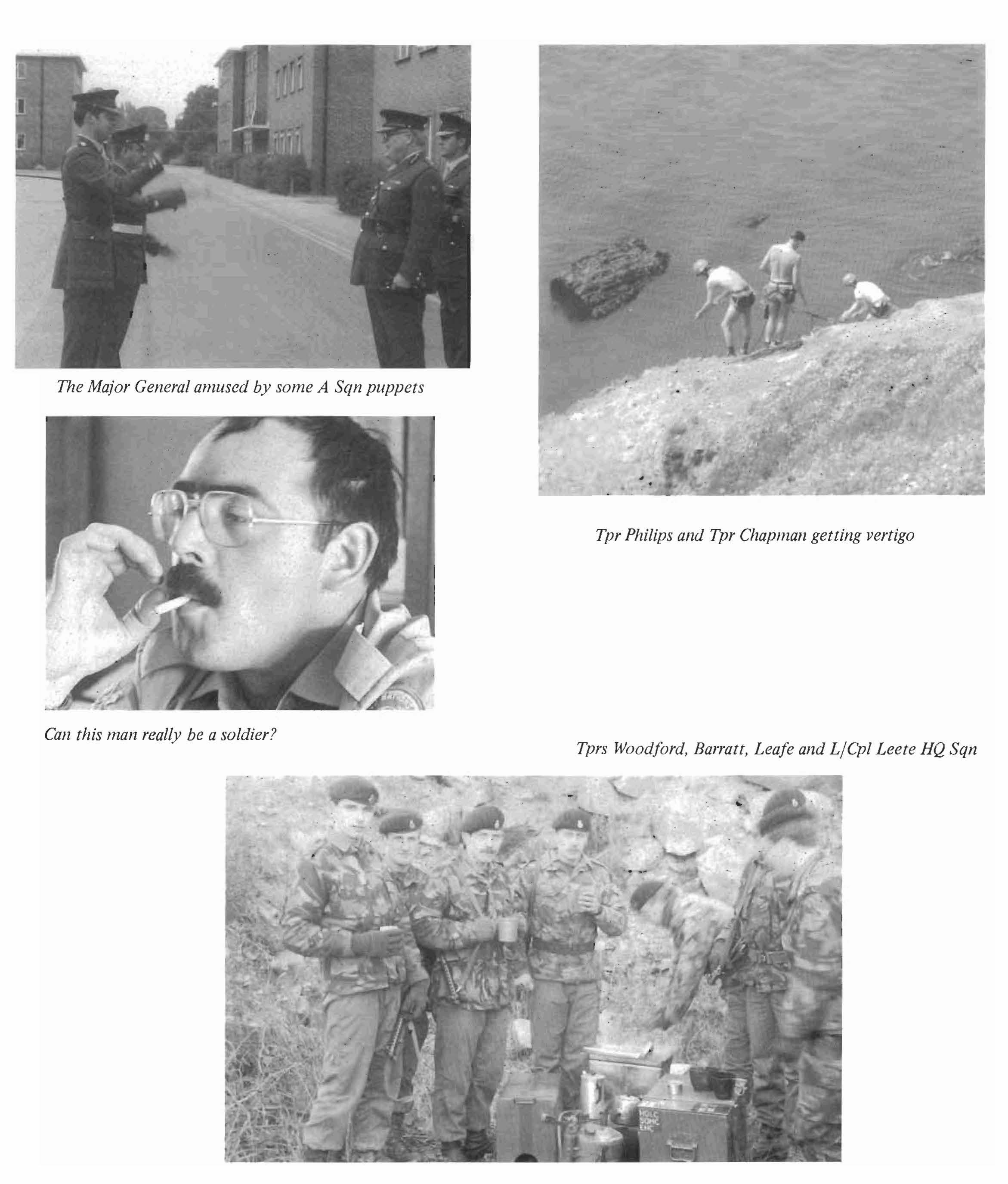 1985, to coin an bId phrase, was a busy year, packed with varied commitments and personality changes. Mr Assheton led a platoon, filled mostly from the· Squadron, to Belize for 6 months. They were attached to the Grenadier Guards and learned mainly infantry and assault pioneer skills, as well as helping to paint everything in sight blue - redblue! The platoon returned, much bronzed, in early April in time for Easter leave. Meanwhile a further Troop, under the command of Lt Cape, was training for the armoured reconnaissance role in Belize and finally left for a6 month tour in March.
