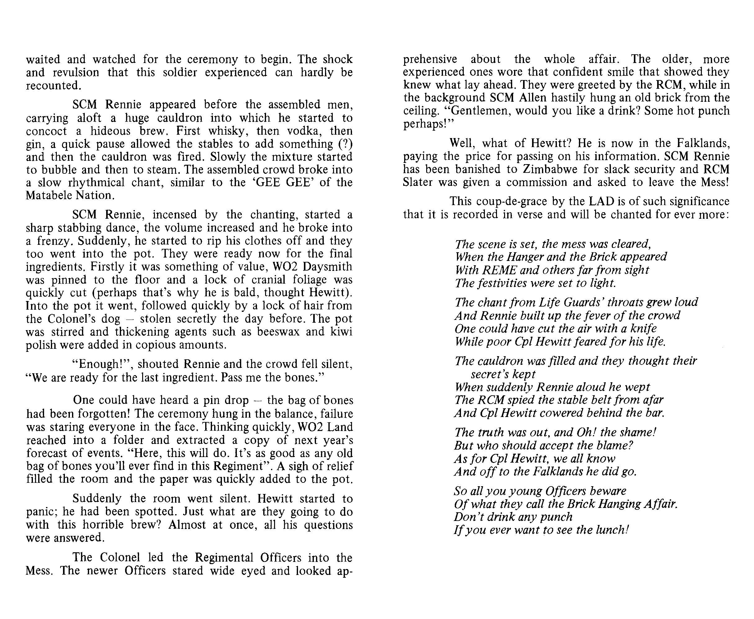 Major PRL Hunter has handed over to Major AP De Ritter and goes to the Ministry of Defence. SCM Allen has handed over to SCM Stay and goes to Nottingham for his last 6 months. CoH Stephenson is luckiest of all and has gone to Zimbabwe for 6 months to help run a squadron of T-55s.