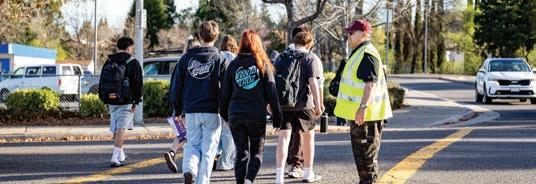 walkway for students to get to their cars is a minor inconvenience with kids surprising unready drivers from around cars and planter boxes.