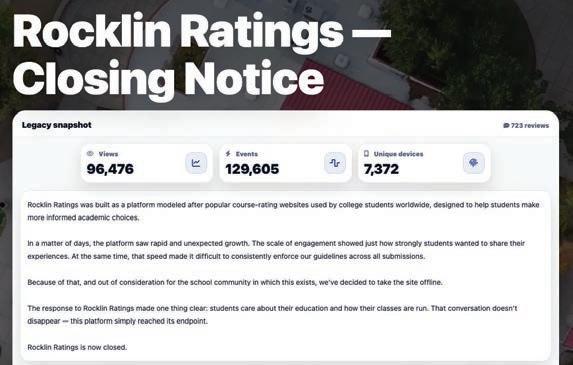 Earlier this semester, a new website began circulating among Rocklin High School (RHS) students: Rocklin Ratings, a “Rate My Professor”–style platform where students could anonymously review RHS teachers. The site was not affiliated with RHS or the Rocklin Unified School District, but it caught popularity nonetheless.