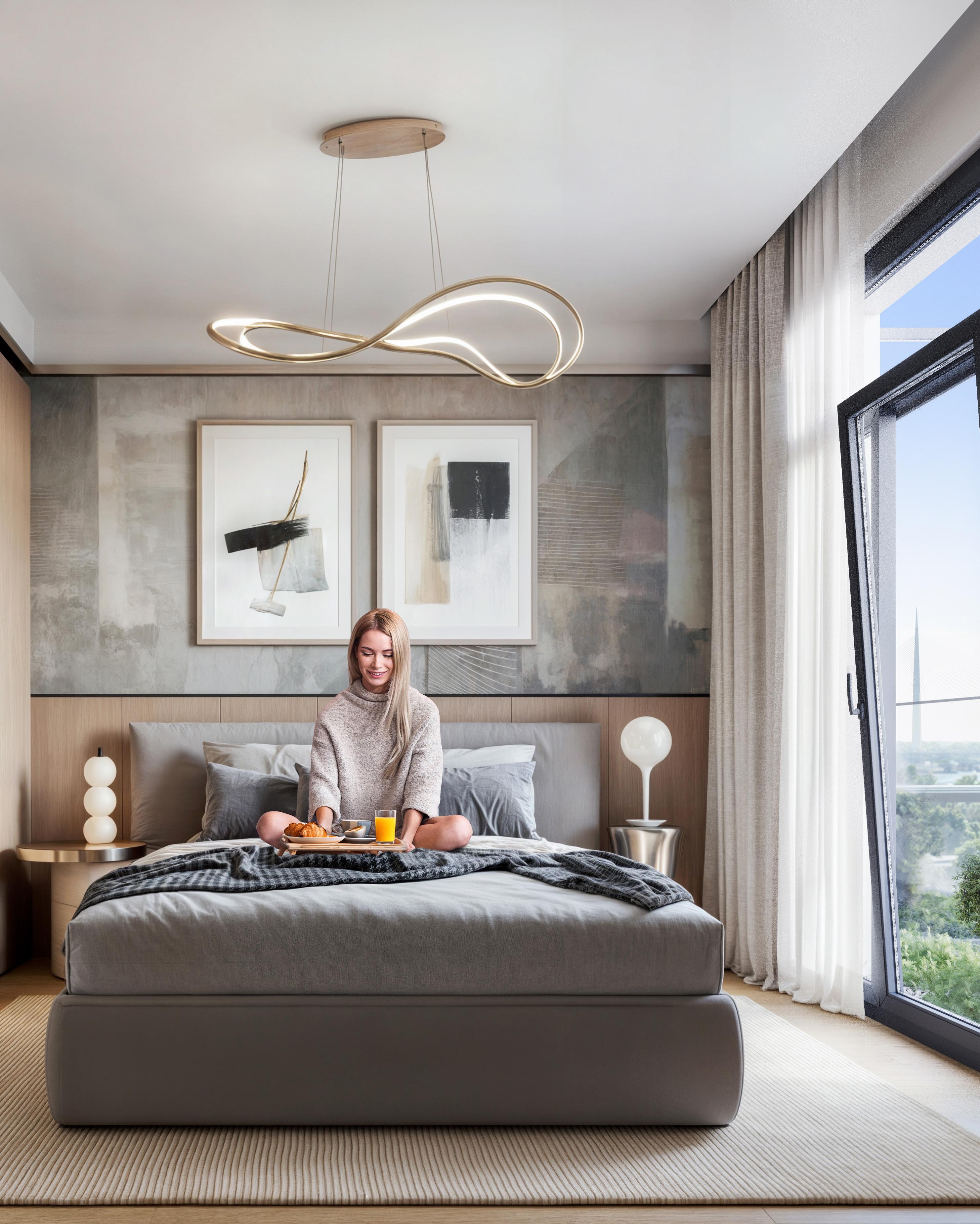prostore i obilje prirodnog svetla, stvarajući osećaj udobnosti i blagostanja. Visine plafona se kreću od 250 cm u kupatilima do 260 cm u hodnicima i 280 cm u dnevnim i spavaćim sobama, što dodatno pojačava osećaj prostranosti, dok terase u svakoj stambenoj jedinici sadrže prozore od poda do plafona koji pružaju celodnevnu sunčevu svetlost. U zavisnosti od orijentacije, stanari mogu uživati u divnim pogledima na lepo uređeno unutrašnje dvorište, zelenilo Linijskog parka, pešački i biciklistički most, reku Savu i okolne zgrade.