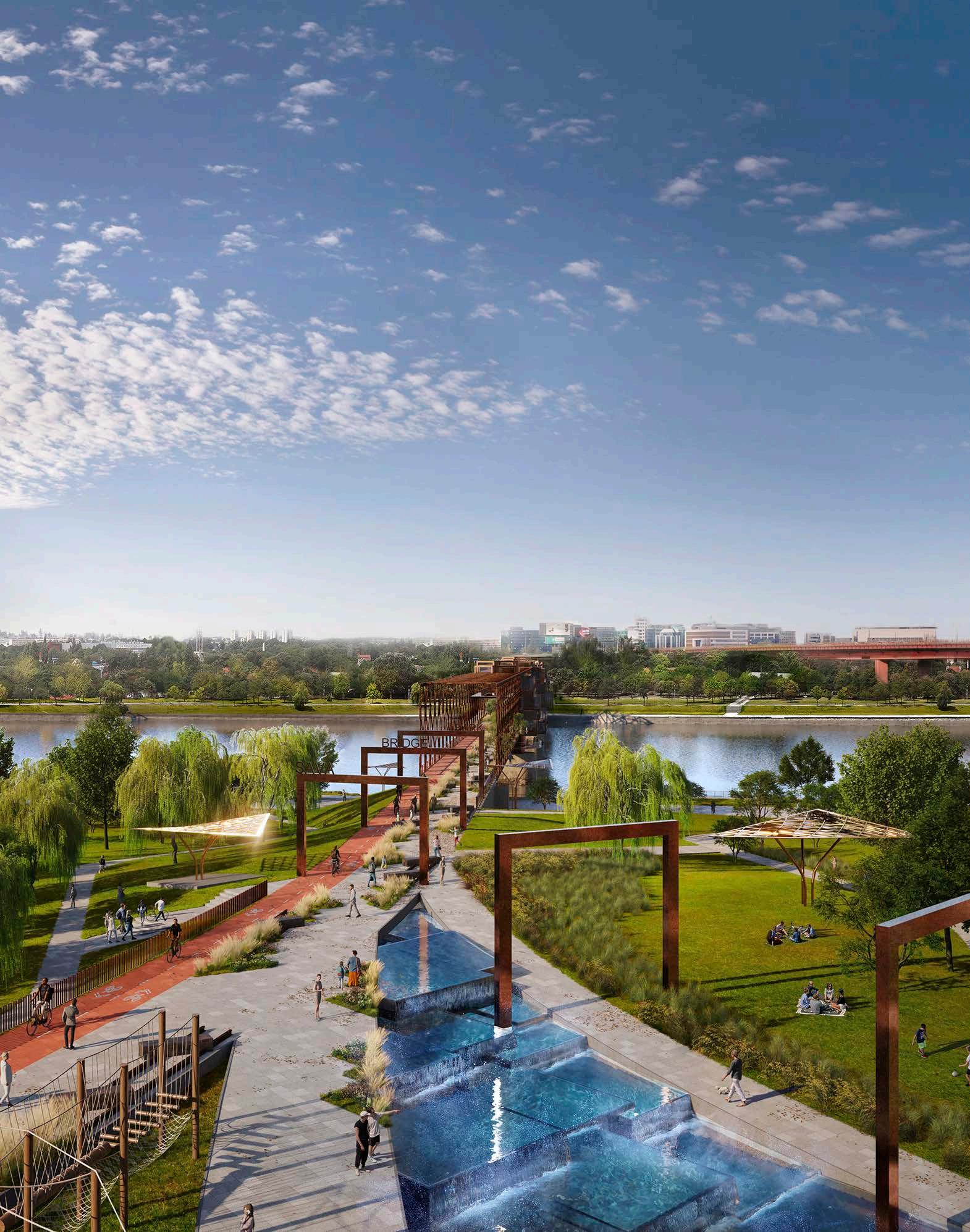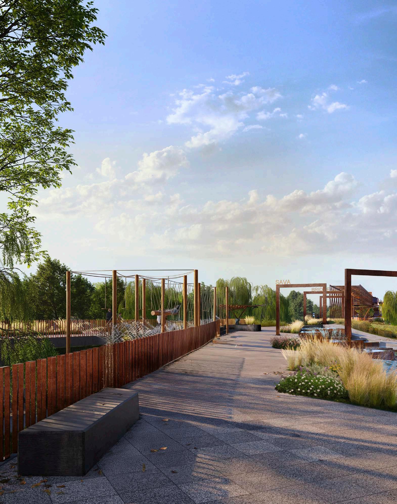 Linear park connects the Sava Promenade and Belgrade Waterfront with other parts of the city, offering tranquil, landscaped paths, places to pause, and scenic viewpoints that open up new perspectives of the river and the city. A pedestrian and cycling bridge ensures smooth, enjoyable connections between different urban areas, away from noise and congestion.