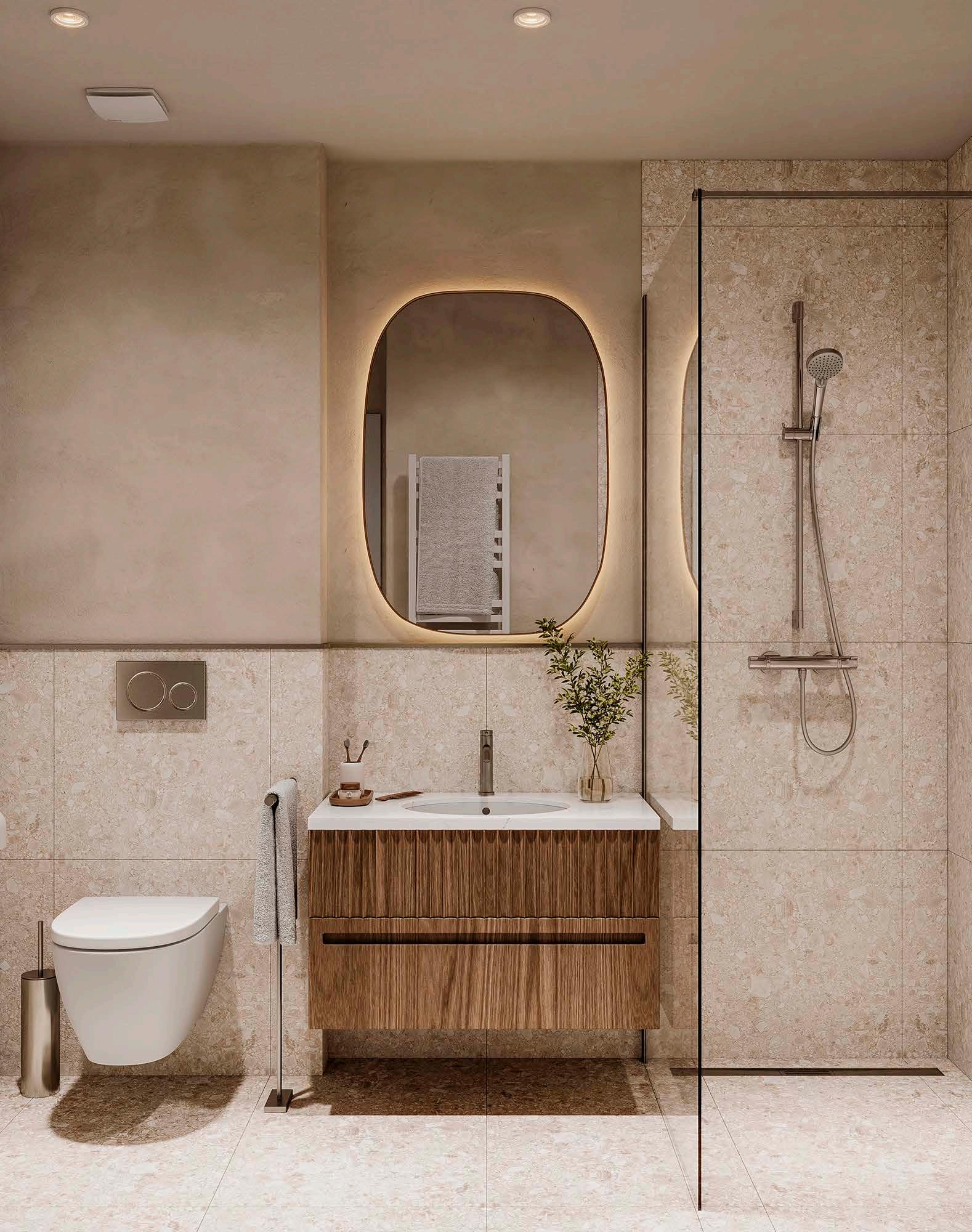Paleta boja enterijera, inspirisana prirodnim tonovima dodatno pojačava osećaj topline i skladnosti. Plafoni su visine 280 cm u dnevnim boravcima i spavaćim sobama, dok su u hodnicima, kuhinjama, kupatilima, toaletima i vešernicama 260 cm, što dodatno naglašava osećaj prostranosti. Svi stanovi opremljeni su centralnim daljinskim grejanjem sa radijatorima u svim prostorijama, dok su kupatila opremljena i sušačima peškira. Napredni multi-split sistem klimatizacije omogućava individualnu