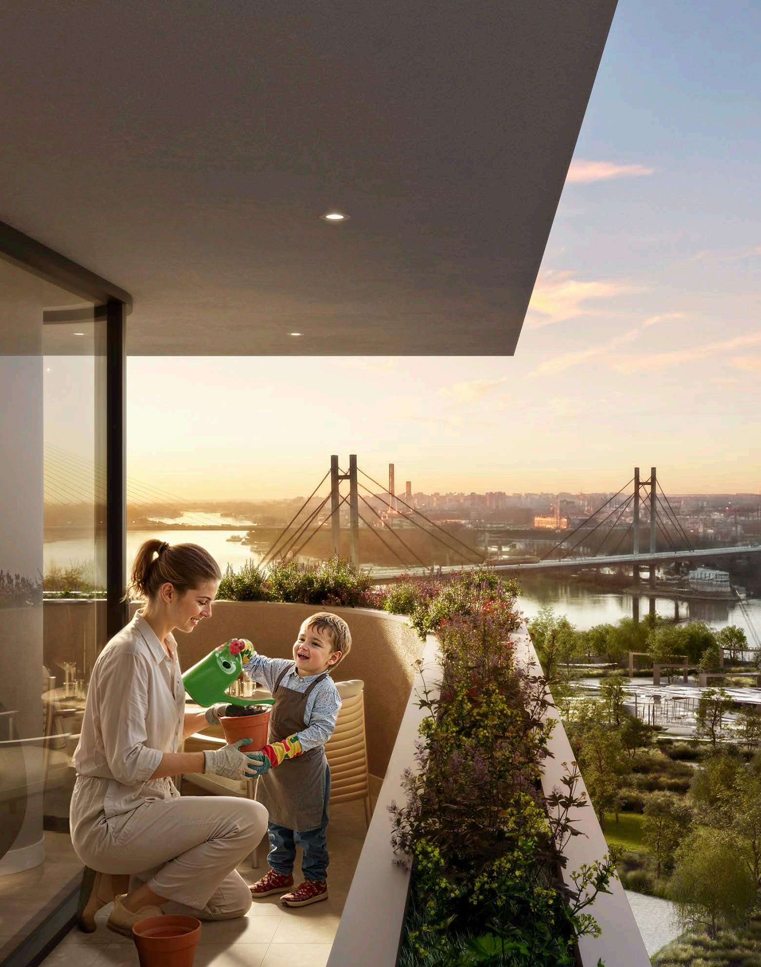 Uređeni trgovi, raskošni parkovi, javni prostori, biciklističke i pešačke staze, kao i jedinstvena Sava Promenada uz vrhunske sadržaje, stvaraju ambijent koji odgovara savremenom, kosmopolitskom načinu života.