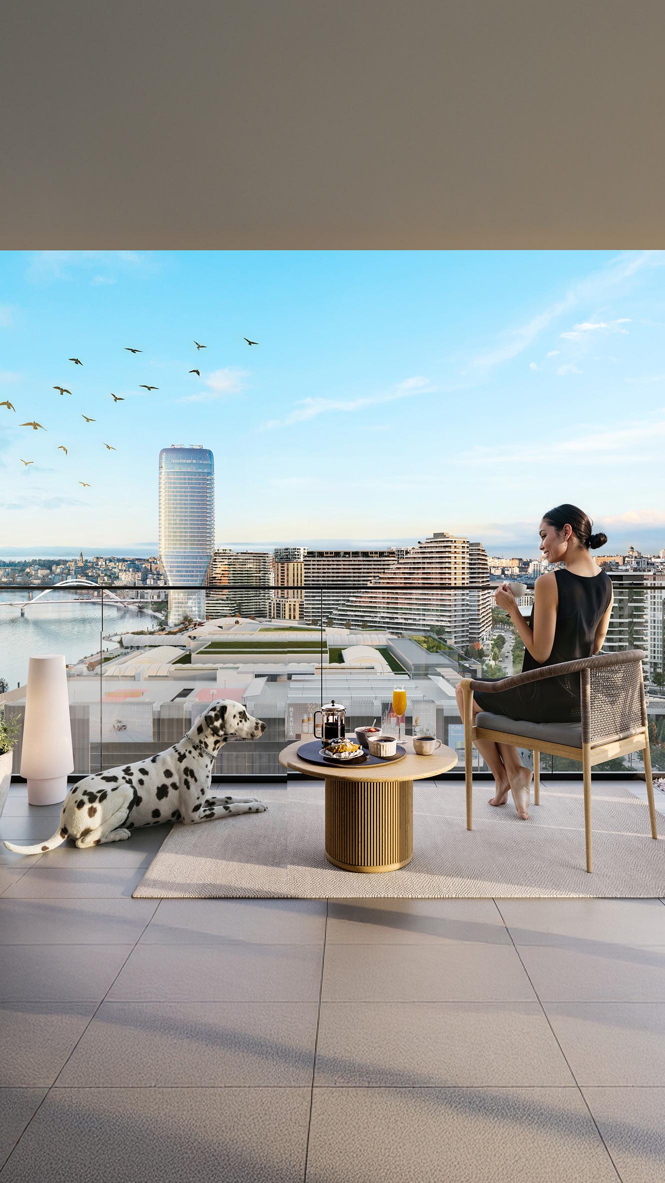 BW Sena je mnogo više od stambene zgrade. Ona je deo arhitektonski oblikovanog ambijenta uz samu obalu Save, u kojem šetalište, linijski park i gradski sadržaji prirodno funkcionišu kao produžetak svakodnevnog života stanara. Svojom formom i velikim staklenim površinama, BW Sena otvara pogled ka reci i zelenim površinama, istovremeno ostajući deo