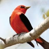 The Scarlet Tanager is also on Audubon’s list of Responsibility Birds, a selection of species that researchers are actively monitoring, and Audubon is developing habitat management plans to reverse population declines. The conservation of these birds often indirectly