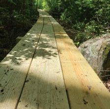 Thanks to funding from an anonymous donor, visitors to Fisherville Brook Wildlife Refuge in Exeter will have drier boots this summer. Construction on a new, 100-foot wetland boardwalk was begun by properties staff in June, replacing smaller disconnected footbridges that were mismatched and unstable.